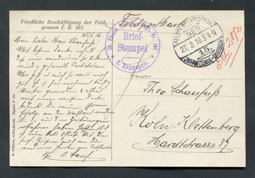 Ein Onlinearchiv mit Feldpostkarten und Liebesgaben aus dem ersten Weltkrieg des 20. Jahrhunderts. Unser Verein „Kölsche Funke rut-wieß vun 1823 e.V.“ oder kurz die „Roten Funken“ gedenken hier Mitgliedern, die den grausamen Krieg erleben mussten.