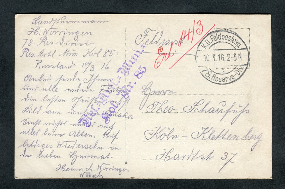 Ein Onlinearchiv mit Feldpostkarten und Liebesgaben aus dem ersten Weltkrieg des 20. Jahrhunderts. Unser Verein „Kölsche Funke rut-wieß vun 1823 e.V.“ oder kurz die „Roten Funken“ gedenken hier Mitgliedern, die den grausamen Krieg erleben mussten.