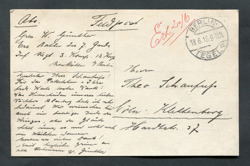 Ein Onlinearchiv mit Feldpostkarten und Liebesgaben aus dem ersten Weltkrieg des 20. Jahrhunderts. Unser Verein „Kölsche Funke rut-wieß vun 1823 e.V.“ oder kurz die „Roten Funken“ gedenken hier Mitgliedern, die den grausamen Krieg erleben mussten.