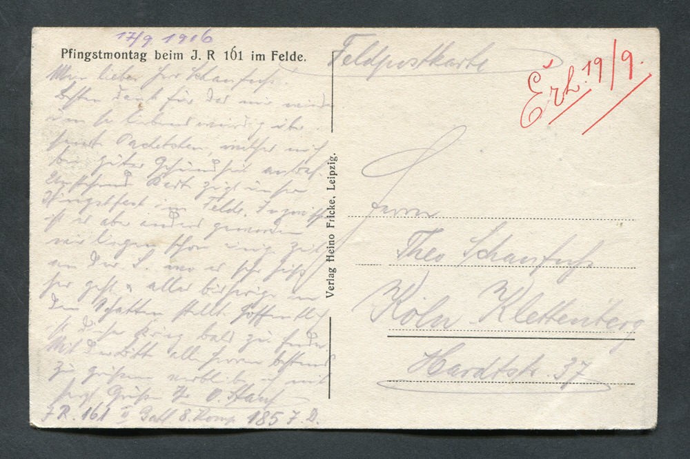 Ein Onlinearchiv mit Feldpostkarten und Liebesgaben aus dem ersten Weltkrieg des 20. Jahrhunderts. Unser Verein „Kölsche Funke rut-wieß vun 1823 e.V.“ oder kurz die „Roten Funken“ gedenken hier Mitgliedern, die den grausamen Krieg erleben mussten.