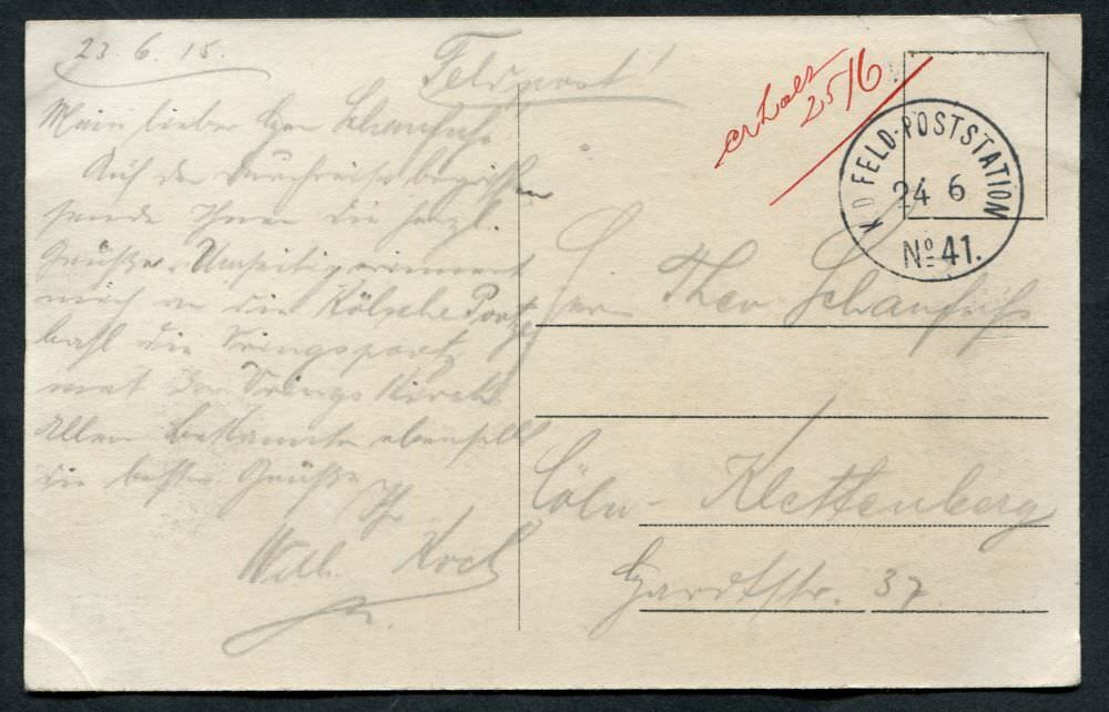 Ein Onlinearchiv mit Feldpostkarten und Liebesgaben aus dem ersten Weltkrieg des 20. Jahrhunderts. Unser Verein „Kölsche Funke rut-wieß vun 1823 e.V.“ oder kurz die „Roten Funken“ gedenken hier Mitgliedern, die den grausamen Krieg erleben mussten.