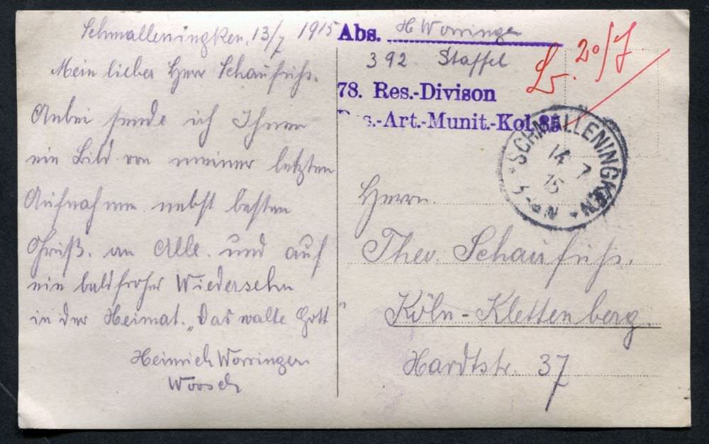 Ein Onlinearchiv mit Feldpostkarten und Liebesgaben aus dem ersten Weltkrieg des 20. Jahrhunderts. Unser Verein „Kölsche Funke rut-wieß vun 1823 e.V.“ oder kurz die „Roten Funken“ gedenken hier Mitgliedern, die den grausamen Krieg erleben mussten.
