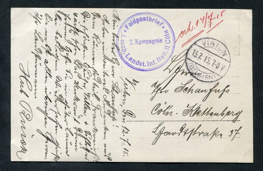 Ein Onlinearchiv mit Feldpostkarten und Liebesgaben aus dem ersten Weltkrieg des 20. Jahrhunderts. Unser Verein „Kölsche Funke rut-wieß vun 1823 e.V.“ oder kurz die „Roten Funken“ gedenken hier Mitgliedern, die den grausamen Krieg erleben mussten.
