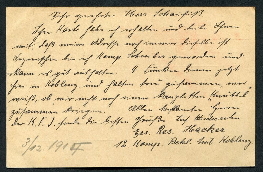 Ein Onlinearchiv mit Feldpostkarten und Liebesgaben aus dem ersten Weltkrieg des 20. Jahrhunderts. Unser Verein „Kölsche Funke rut-wieß vun 1823 e.V.“ oder kurz die „Roten Funken“ gedenken hier Mitgliedern, die den grausamen Krieg erleben mussten.
