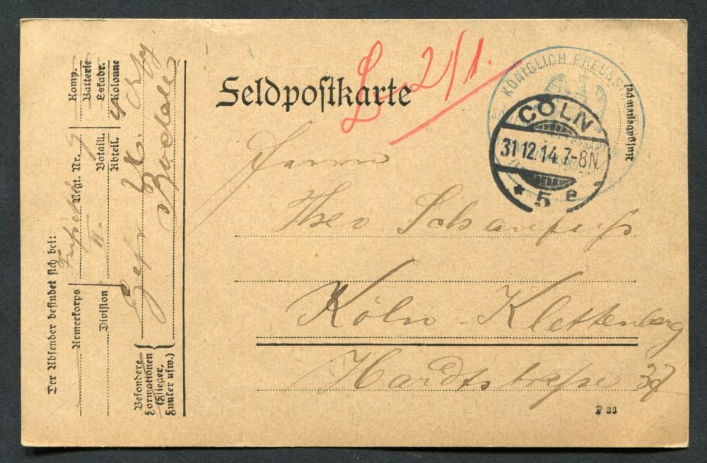 Ein Onlinearchiv mit Feldpostkarten und Liebesgaben aus dem ersten Weltkrieg des 20. Jahrhunderts. Unser Verein „Kölsche Funke rut-wieß vun 1823 e.V.“ oder kurz die „Roten Funken“ gedenken hier Mitgliedern, die den grausamen Krieg erleben mussten.