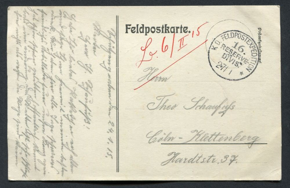 Ein Onlinearchiv mit Feldpostkarten und Liebesgaben aus dem ersten Weltkrieg des 20. Jahrhunderts. Unser Verein „Kölsche Funke rut-wieß vun 1823 e.V.“ oder kurz die „Roten Funken“ gedenken hier Mitgliedern, die den grausamen Krieg erleben mussten.