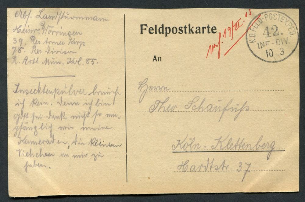 Ein Onlinearchiv mit Feldpostkarten und Liebesgaben aus dem ersten Weltkrieg des 20. Jahrhunderts. Unser Verein „Kölsche Funke rut-wieß vun 1823 e.V.“ oder kurz die „Roten Funken“ gedenken hier Mitgliedern, die den grausamen Krieg erleben mussten.