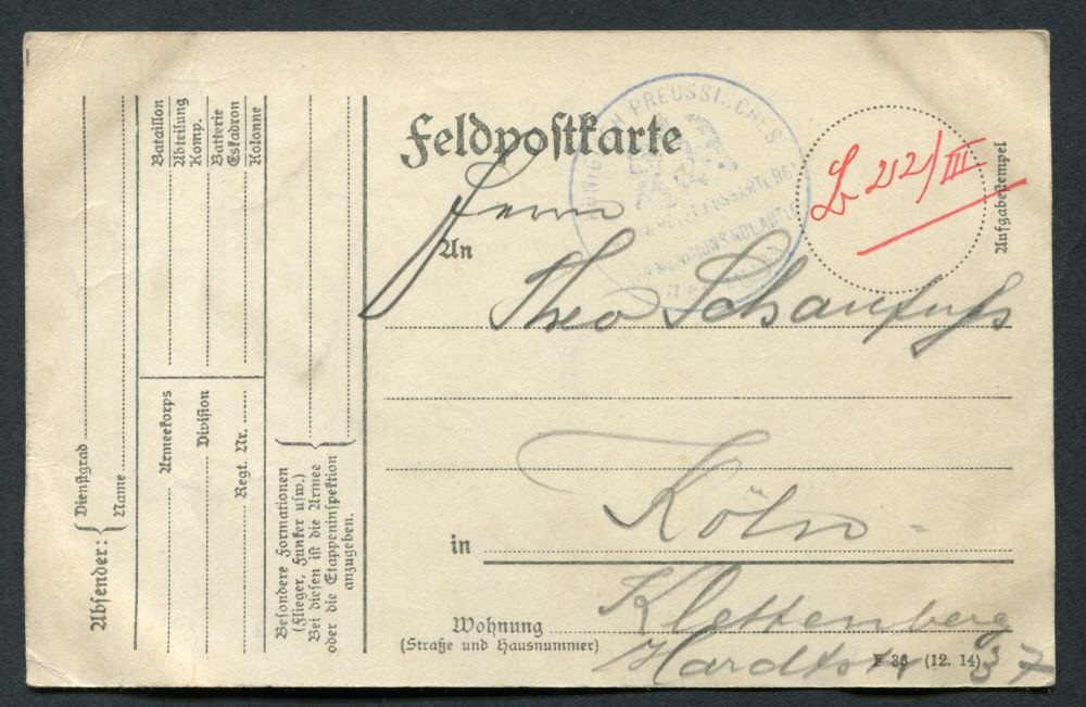 Ein Onlinearchiv mit Feldpostkarten und Liebesgaben aus dem ersten Weltkrieg des 20. Jahrhunderts. Unser Verein „Kölsche Funke rut-wieß vun 1823 e.V.“ oder kurz die „Roten Funken“ gedenken hier Mitgliedern, die den grausamen Krieg erleben mussten.