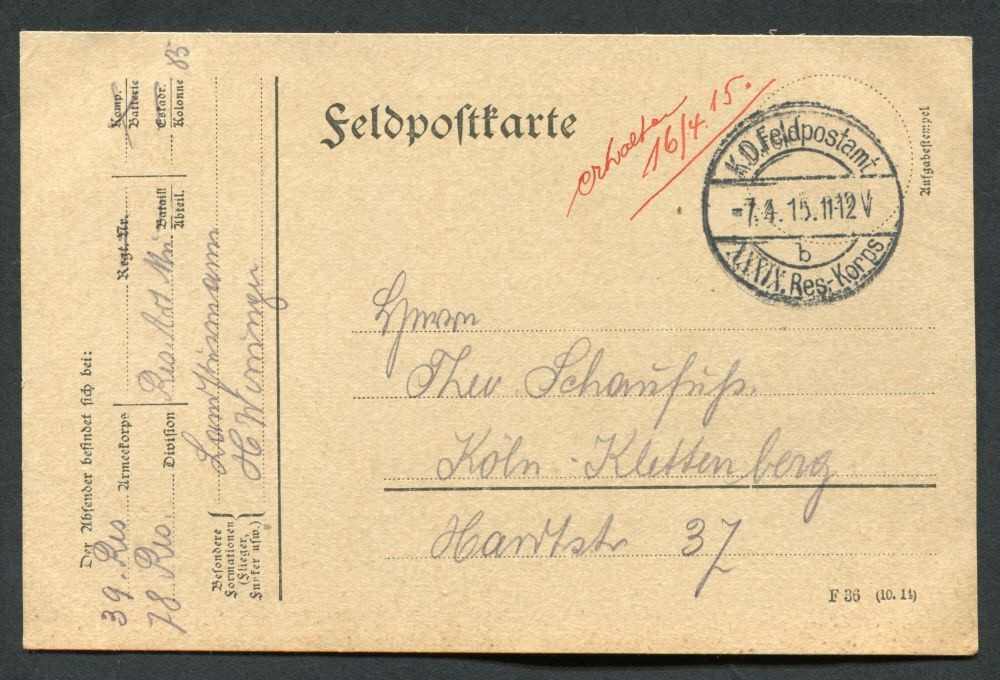 Ein Onlinearchiv mit Feldpostkarten und Liebesgaben aus dem ersten Weltkrieg des 20. Jahrhunderts. Unser Verein „Kölsche Funke rut-wieß vun 1823 e.V.“ oder kurz die „Roten Funken“ gedenken hier Mitgliedern, die den grausamen Krieg erleben mussten.