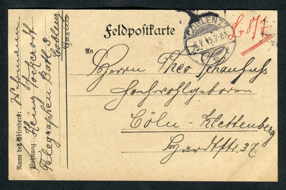 Ein Onlinearchiv mit Feldpostkarten und Liebesgaben aus dem ersten Weltkrieg des 20. Jahrhunderts. Unser Verein „Kölsche Funke rut-wieß vun 1823 e.V.“ oder kurz die „Roten Funken“ gedenken hier Mitgliedern, die den grausamen Krieg erleben mussten.
