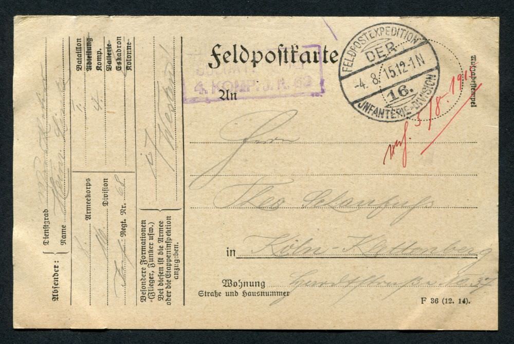 Ein Onlinearchiv mit Feldpostkarten und Liebesgaben aus dem ersten Weltkrieg des 20. Jahrhunderts. Unser Verein „Kölsche Funke rut-wieß vun 1823 e.V.“ oder kurz die „Roten Funken“ gedenken hier Mitgliedern, die den grausamen Krieg erleben mussten.