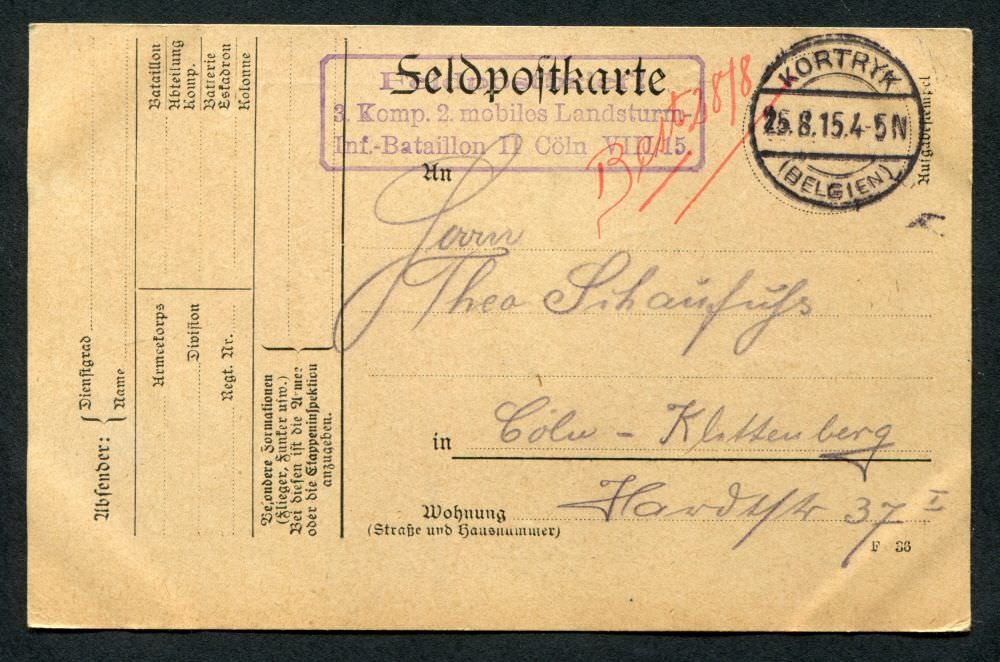 Ein Onlinearchiv mit Feldpostkarten und Liebesgaben aus dem ersten Weltkrieg des 20. Jahrhunderts. Unser Verein „Kölsche Funke rut-wieß vun 1823 e.V.“ oder kurz die „Roten Funken“ gedenken hier Mitgliedern, die den grausamen Krieg erleben mussten.