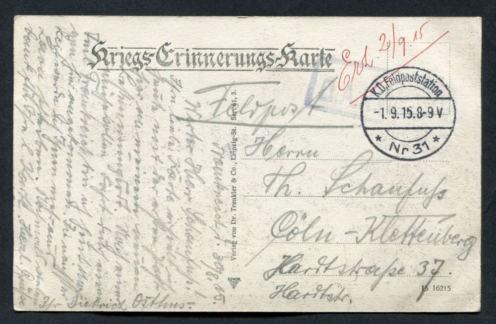 Ein Onlinearchiv mit Feldpostkarten und Liebesgaben aus dem ersten Weltkrieg des 20. Jahrhunderts. Unser Verein „Kölsche Funke rut-wieß vun 1823 e.V.“ oder kurz die „Roten Funken“ gedenken hier Mitgliedern, die den grausamen Krieg erleben mussten.