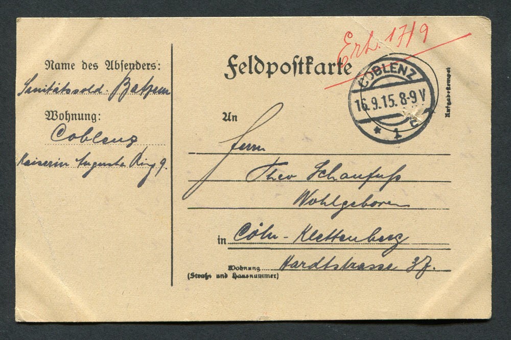 Ein Onlinearchiv mit Feldpostkarten und Liebesgaben aus dem ersten Weltkrieg des 20. Jahrhunderts. Unser Verein „Kölsche Funke rut-wieß vun 1823 e.V.“ oder kurz die „Roten Funken“ gedenken hier Mitgliedern, die den grausamen Krieg erleben mussten.