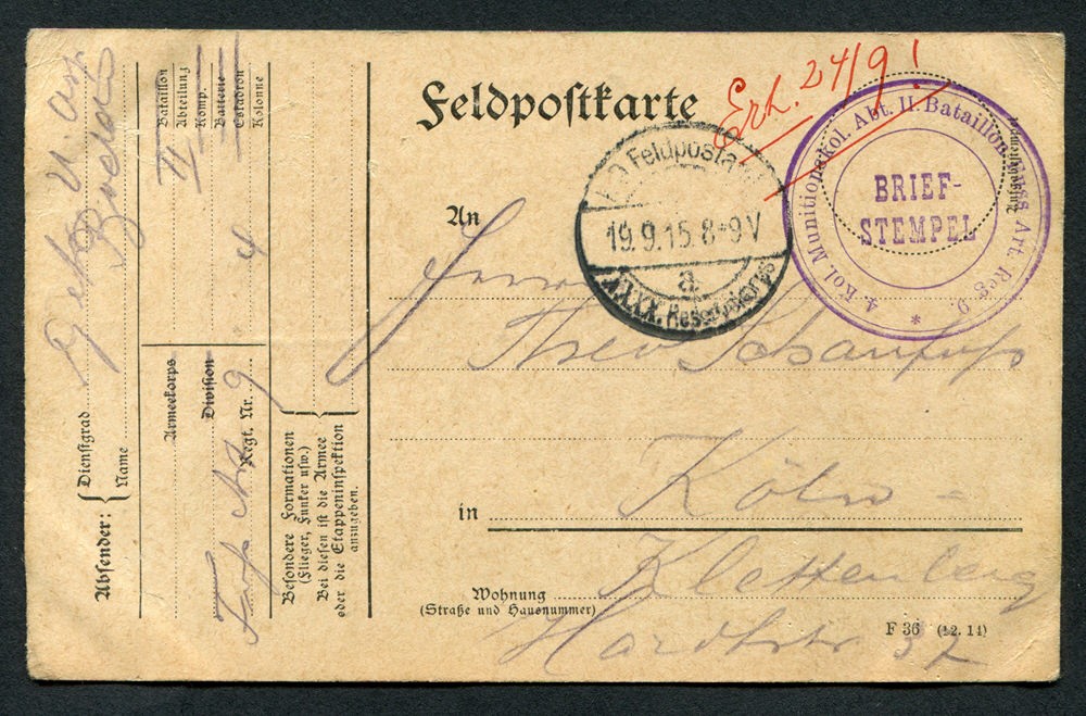 Ein Onlinearchiv mit Feldpostkarten und Liebesgaben aus dem ersten Weltkrieg des 20. Jahrhunderts. Unser Verein „Kölsche Funke rut-wieß vun 1823 e.V.“ oder kurz die „Roten Funken“ gedenken hier Mitgliedern, die den grausamen Krieg erleben mussten.