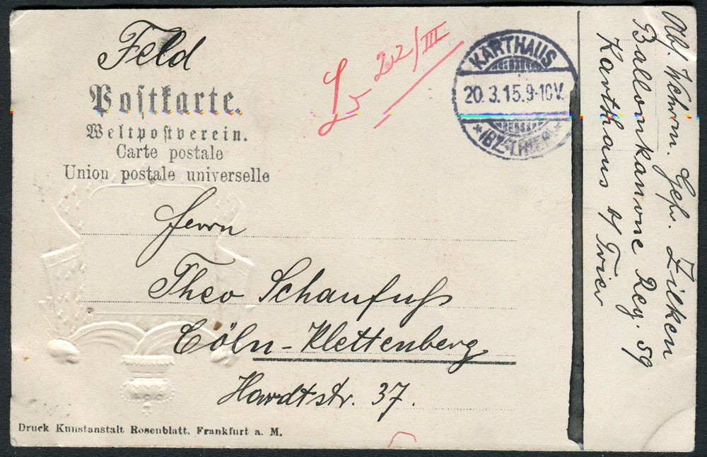 Ein Onlinearchiv mit Feldpostkarten und Liebesgaben aus dem ersten Weltkrieg des 20. Jahrhunderts. Unser Verein „Kölsche Funke rut-wieß vun 1823 e.V.“ oder kurz die „Roten Funken“ gedenken hier Mitgliedern, die den grausamen Krieg erleben mussten.
