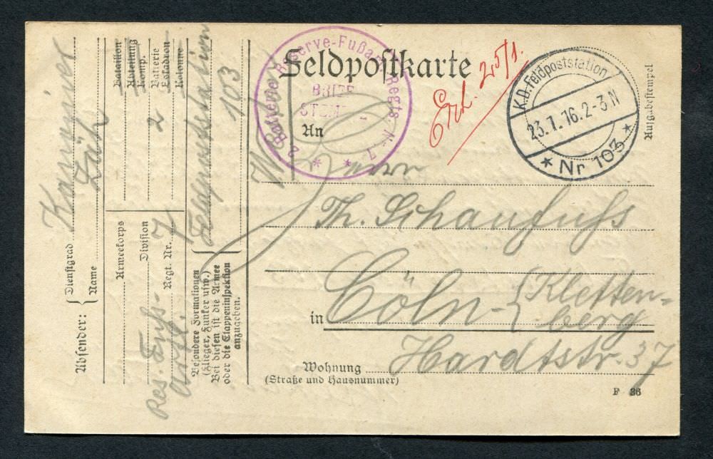 Ein Onlinearchiv mit Feldpostkarten und Liebesgaben aus dem ersten Weltkrieg des 20. Jahrhunderts. Unser Verein „Kölsche Funke rut-wieß vun 1823 e.V.“ oder kurz die „Roten Funken“ gedenken hier Mitgliedern, die den grausamen Krieg erleben mussten.