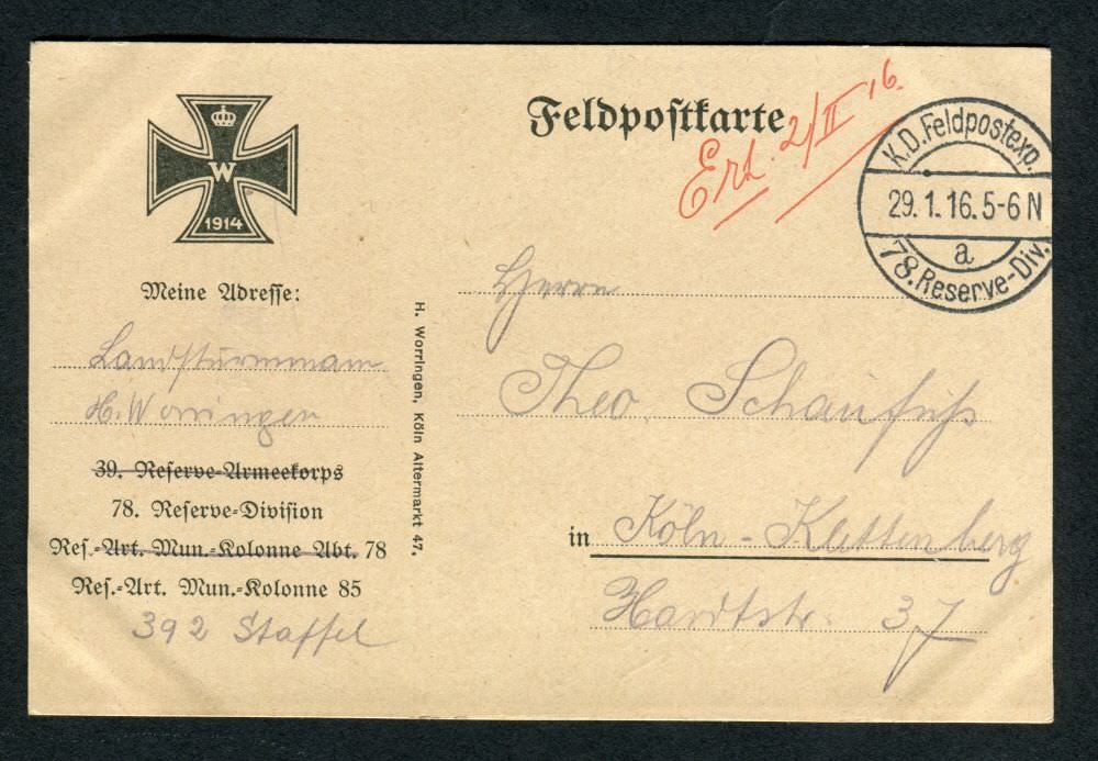 Ein Onlinearchiv mit Feldpostkarten und Liebesgaben aus dem ersten Weltkrieg des 20. Jahrhunderts. Unser Verein „Kölsche Funke rut-wieß vun 1823 e.V.“ oder kurz die „Roten Funken“ gedenken hier Mitgliedern, die den grausamen Krieg erleben mussten.