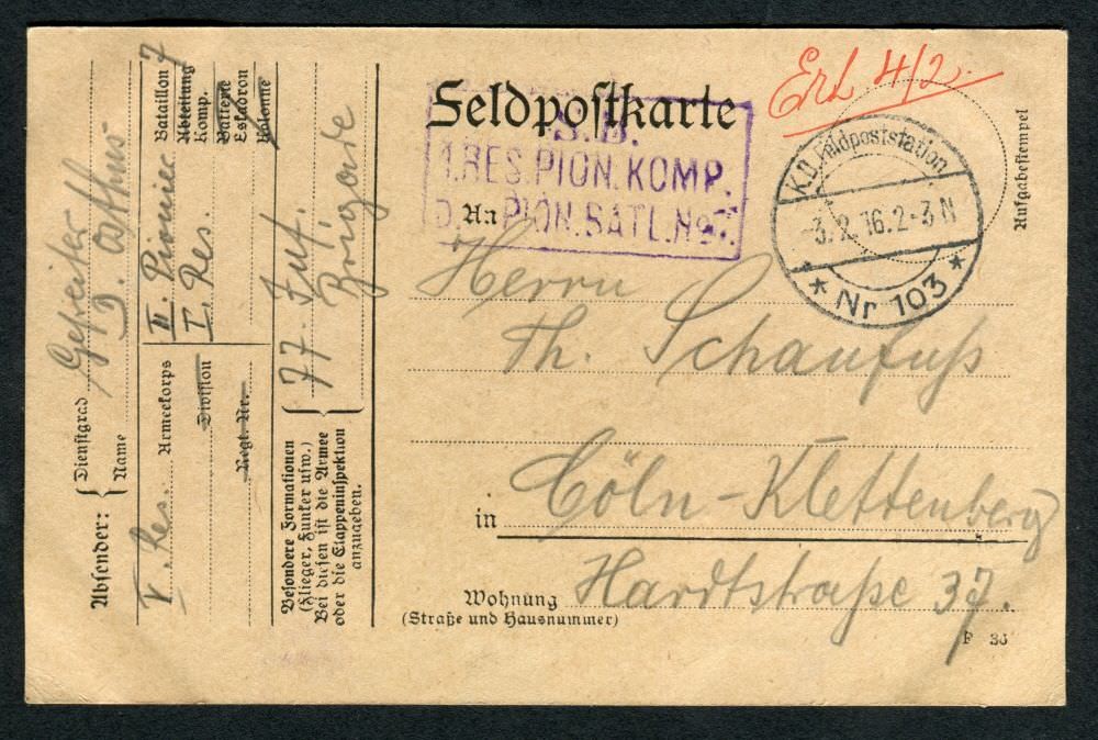 Ein Onlinearchiv mit Feldpostkarten und Liebesgaben aus dem ersten Weltkrieg des 20. Jahrhunderts. Unser Verein „Kölsche Funke rut-wieß vun 1823 e.V.“ oder kurz die „Roten Funken“ gedenken hier Mitgliedern, die den grausamen Krieg erleben mussten.