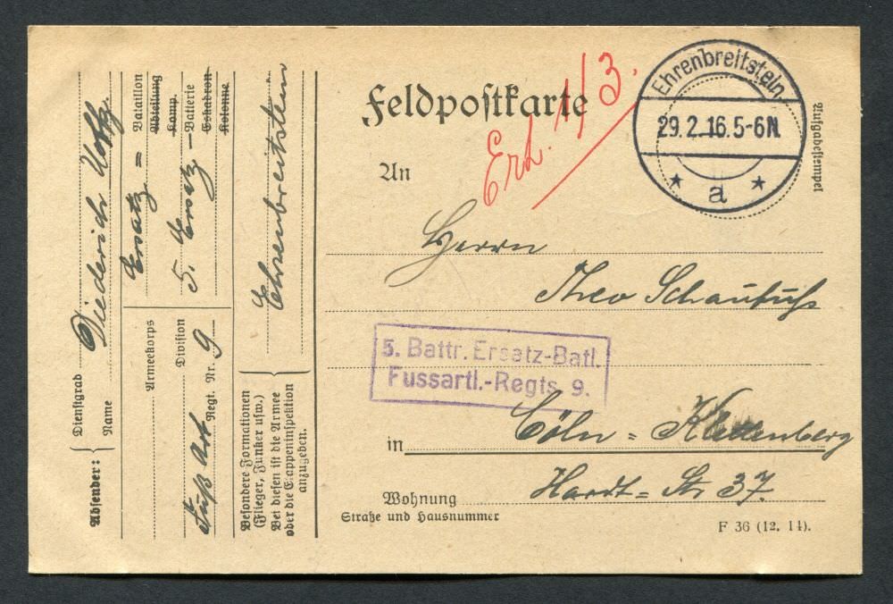 Ein Onlinearchiv mit Feldpostkarten und Liebesgaben aus dem ersten Weltkrieg des 20. Jahrhunderts. Unser Verein „Kölsche Funke rut-wieß vun 1823 e.V.“ oder kurz die „Roten Funken“ gedenken hier Mitgliedern, die den grausamen Krieg erleben mussten.