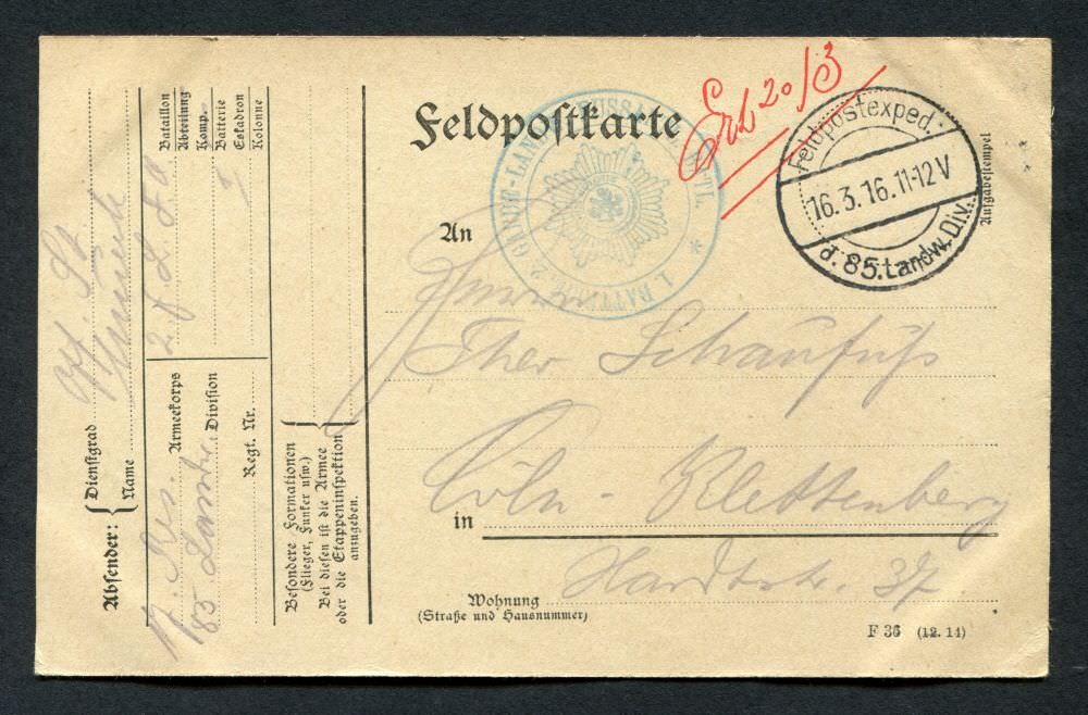 Ein Onlinearchiv mit Feldpostkarten und Liebesgaben aus dem ersten Weltkrieg des 20. Jahrhunderts. Unser Verein „Kölsche Funke rut-wieß vun 1823 e.V.“ oder kurz die „Roten Funken“ gedenken hier Mitgliedern, die den grausamen Krieg erleben mussten.
