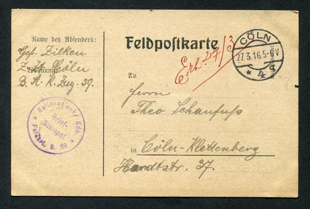 Ein Onlinearchiv mit Feldpostkarten und Liebesgaben aus dem ersten Weltkrieg des 20. Jahrhunderts. Unser Verein „Kölsche Funke rut-wieß vun 1823 e.V.“ oder kurz die „Roten Funken“ gedenken hier Mitgliedern, die den grausamen Krieg erleben mussten.