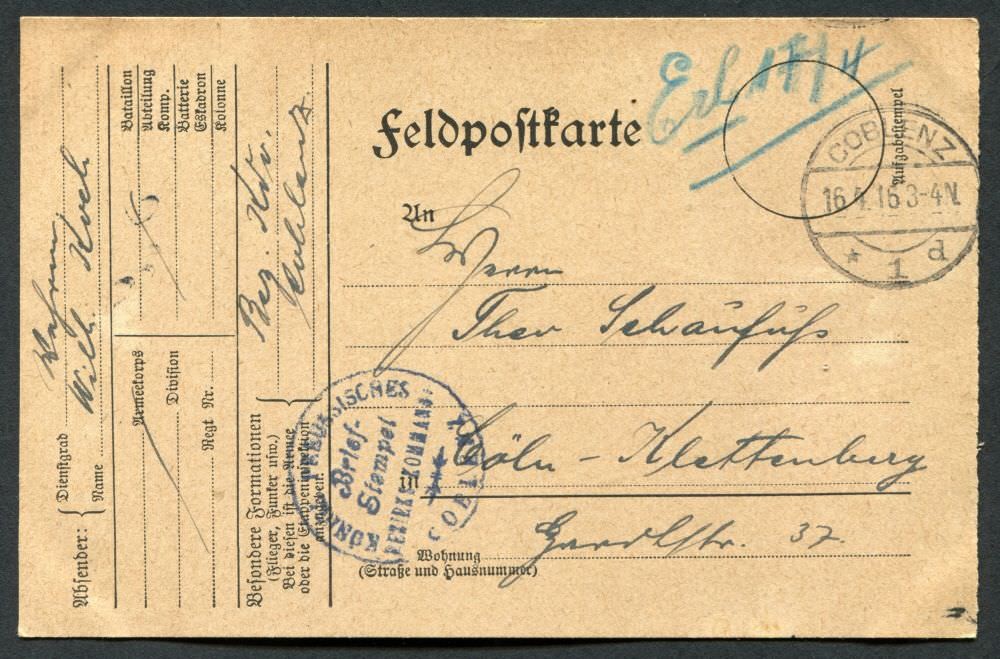 Ein Onlinearchiv mit Feldpostkarten und Liebesgaben aus dem ersten Weltkrieg des 20. Jahrhunderts. Unser Verein „Kölsche Funke rut-wieß vun 1823 e.V.“ oder kurz die „Roten Funken“ gedenken hier Mitgliedern, die den grausamen Krieg erleben mussten.