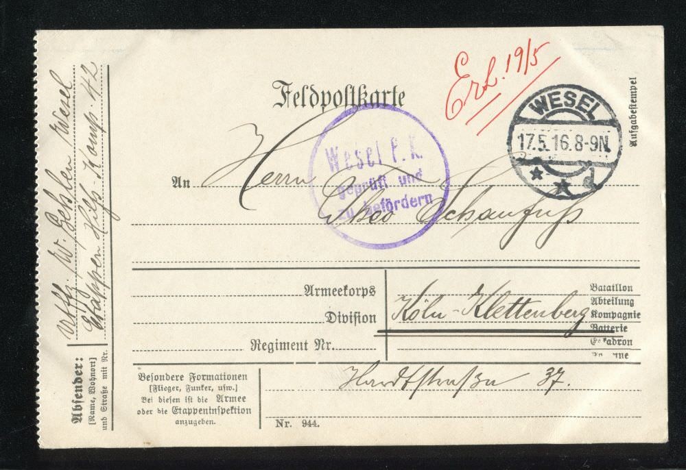 Ein Onlinearchiv mit Feldpostkarten und Liebesgaben aus dem ersten Weltkrieg des 20. Jahrhunderts. Unser Verein „Kölsche Funke rut-wieß vun 1823 e.V.“ oder kurz die „Roten Funken“ gedenken hier Mitgliedern, die den grausamen Krieg erleben mussten.