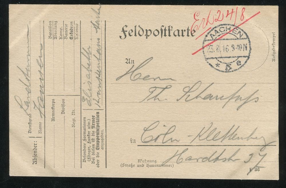 Ein Onlinearchiv mit Feldpostkarten und Liebesgaben aus dem ersten Weltkrieg des 20. Jahrhunderts. Unser Verein „Kölsche Funke rut-wieß vun 1823 e.V.“ oder kurz die „Roten Funken“ gedenken hier Mitgliedern, die den grausamen Krieg erleben mussten.