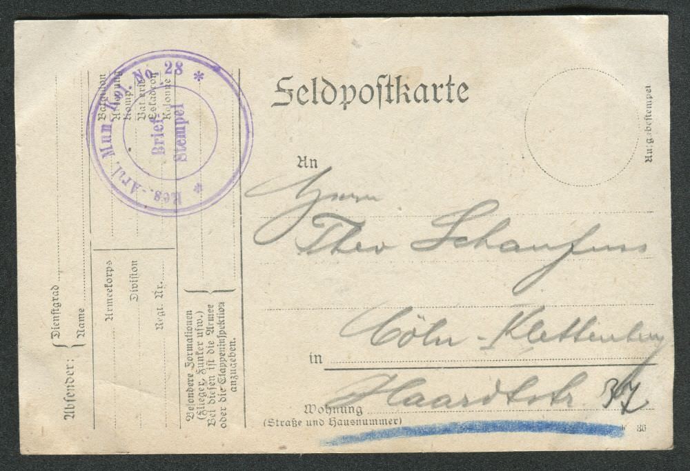 Ein Onlinearchiv mit Feldpostkarten und Liebesgaben aus dem ersten Weltkrieg des 20. Jahrhunderts. Unser Verein „Kölsche Funke rut-wieß vun 1823 e.V.“ oder kurz die „Roten Funken“ gedenken hier Mitgliedern, die den grausamen Krieg erleben mussten.