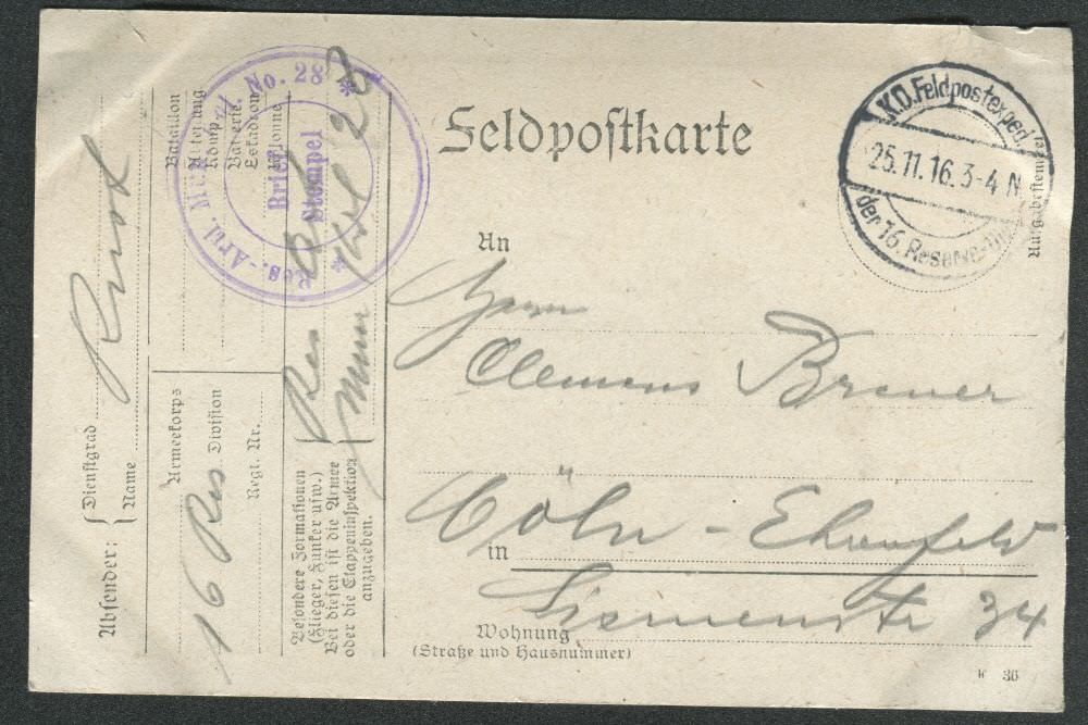 Ein Onlinearchiv mit Feldpostkarten und Liebesgaben aus dem ersten Weltkrieg des 20. Jahrhunderts. Unser Verein „Kölsche Funke rut-wieß vun 1823 e.V.“ oder kurz die „Roten Funken“ gedenken hier Mitgliedern, die den grausamen Krieg erleben mussten.