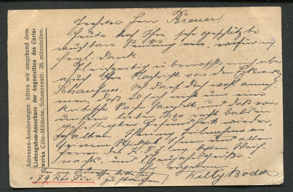 Ein Onlinearchiv mit Feldpostkarten und Liebesgaben aus dem ersten Weltkrieg des 20. Jahrhunderts. Unser Verein „Kölsche Funke rut-wieß vun 1823 e.V.“ oder kurz die „Roten Funken“ gedenken hier Mitgliedern, die den grausamen Krieg erleben mussten.