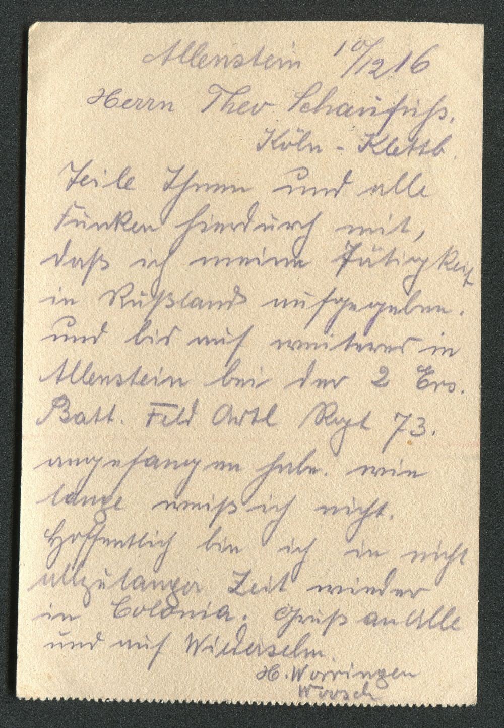Ein Onlinearchiv mit Feldpostkarten und Liebesgaben aus dem ersten Weltkrieg des 20. Jahrhunderts. Unser Verein „Kölsche Funke rut-wieß vun 1823 e.V.“ oder kurz die „Roten Funken“ gedenken hier Mitgliedern, die den grausamen Krieg erleben mussten.