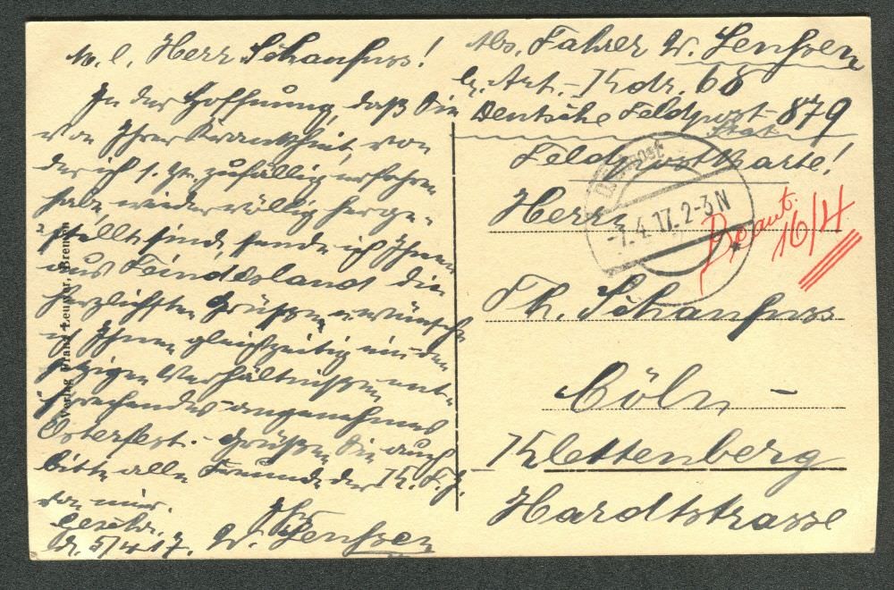 Ein Onlinearchiv mit Feldpostkarten und Liebesgaben aus dem ersten Weltkrieg des 20. Jahrhunderts. Unser Verein „Kölsche Funke rut-wieß vun 1823 e.V.“ oder kurz die „Roten Funken“ gedenken hier Mitgliedern, die den grausamen Krieg erleben mussten.