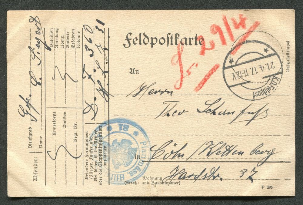 Ein Onlinearchiv mit Feldpostkarten und Liebesgaben aus dem ersten Weltkrieg des 20. Jahrhunderts. Unser Verein „Kölsche Funke rut-wieß vun 1823 e.V.“ oder kurz die „Roten Funken“ gedenken hier Mitgliedern, die den grausamen Krieg erleben mussten.