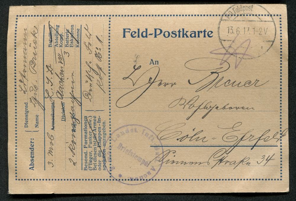 Ein Onlinearchiv mit Feldpostkarten und Liebesgaben aus dem ersten Weltkrieg des 20. Jahrhunderts. Unser Verein „Kölsche Funke rut-wieß vun 1823 e.V.“ oder kurz die „Roten Funken“ gedenken hier Mitgliedern, die den grausamen Krieg erleben mussten.
