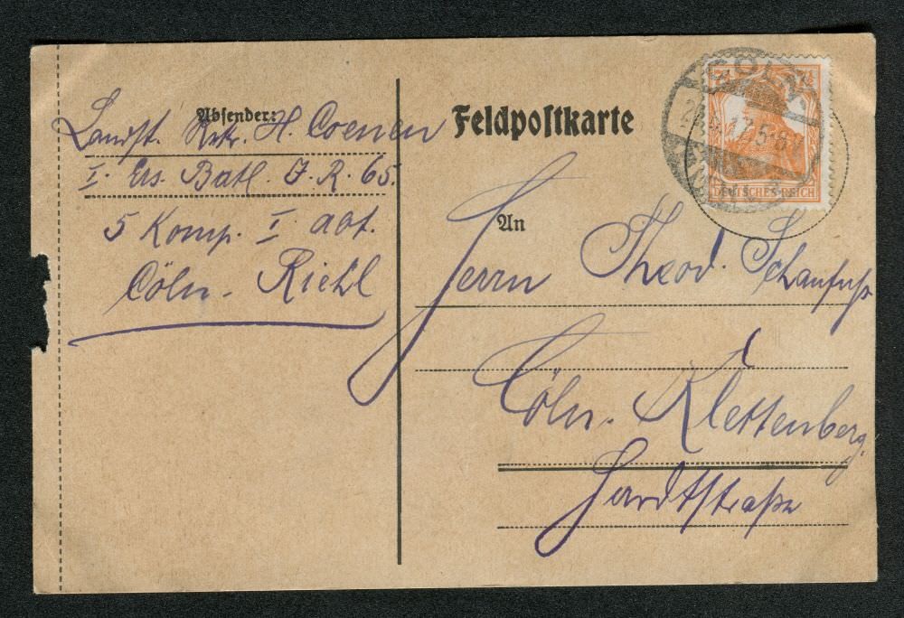 Ein Onlinearchiv mit Feldpostkarten und Liebesgaben aus dem ersten Weltkrieg des 20. Jahrhunderts. Unser Verein „Kölsche Funke rut-wieß vun 1823 e.V.“ oder kurz die „Roten Funken“ gedenken hier Mitgliedern, die den grausamen Krieg erleben mussten.