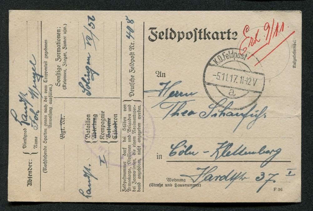 Ein Onlinearchiv mit Feldpostkarten und Liebesgaben aus dem ersten Weltkrieg des 20. Jahrhunderts. Unser Verein „Kölsche Funke rut-wieß vun 1823 e.V.“ oder kurz die „Roten Funken“ gedenken hier Mitgliedern, die den grausamen Krieg erleben mussten.