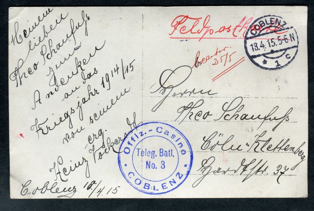 Ein Onlinearchiv mit Feldpostkarten und Liebesgaben aus dem ersten Weltkrieg des 20. Jahrhunderts. Unser Verein „Kölsche Funke rut-wieß vun 1823 e.V.“ oder kurz die „Roten Funken“ gedenken hier Mitgliedern, die den grausamen Krieg erleben mussten.