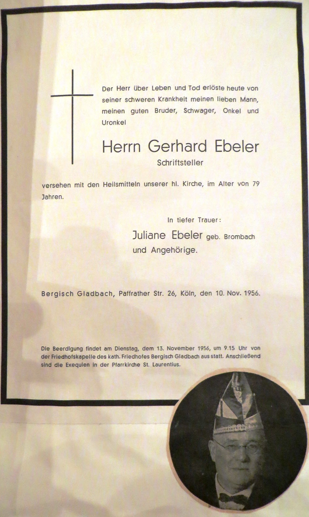 (1) Leifeld, Der Kölner Karneval in der Zeit des Nationalsozialismus, S. 128; HSTAD NW 1048 - 35, Nr. 180; Kleinertz, Kölner Autorenlexikon, Bd. 1, S. 82f.; Müller, "Willkommen, Bienvenue, Welcom…", S. 338.