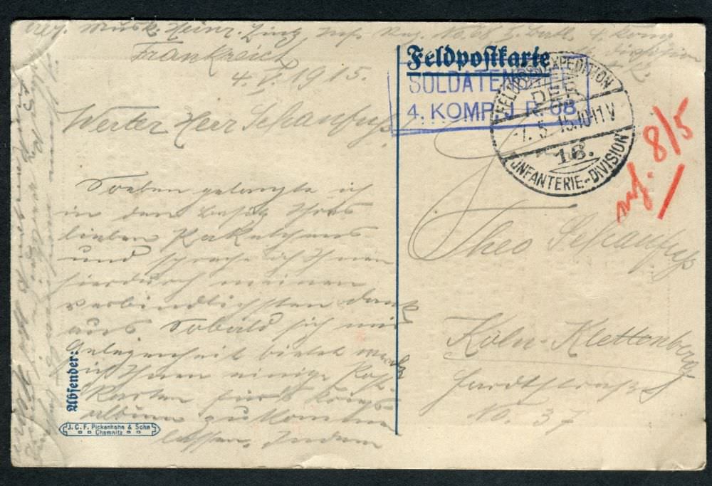 Ein Onlinearchiv mit Feldpostkarten und Liebesgaben aus dem ersten Weltkrieg des 20. Jahrhunderts. Unser Verein „Kölsche Funke rut-wieß vun 1823 e.V.“ oder kurz die „Roten Funken“ gedenken hier Mitgliedern, die den grausamen Krieg erleben mussten.