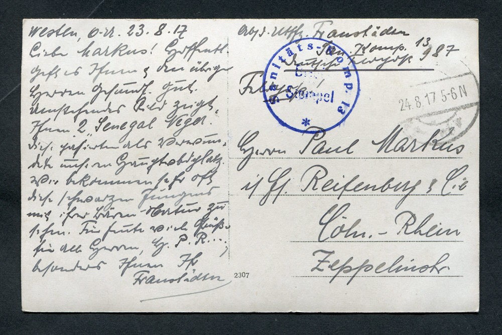 Ein Onlinearchiv mit Feldpostkarten und Liebesgaben aus dem ersten Weltkrieg des 20. Jahrhunderts. Unser Verein „Kölsche Funke rut-wieß vun 1823 e.V.“ oder kurz die „Roten Funken“ gedenken hier Mitgliedern, die den grausamen Krieg erleben mussten.