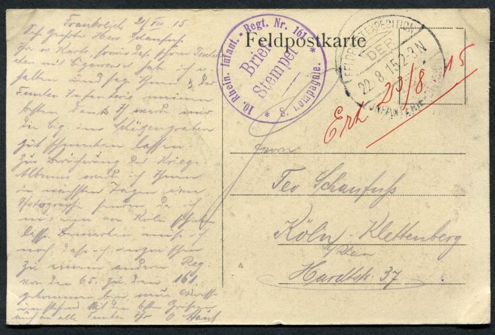 Ein Onlinearchiv mit Feldpostkarten und Liebesgaben aus dem ersten Weltkrieg des 20. Jahrhunderts. Unser Verein „Kölsche Funke rut-wieß vun 1823 e.V.“ oder kurz die „Roten Funken“ gedenken hier Mitgliedern, die den grausamen Krieg erleben mussten.