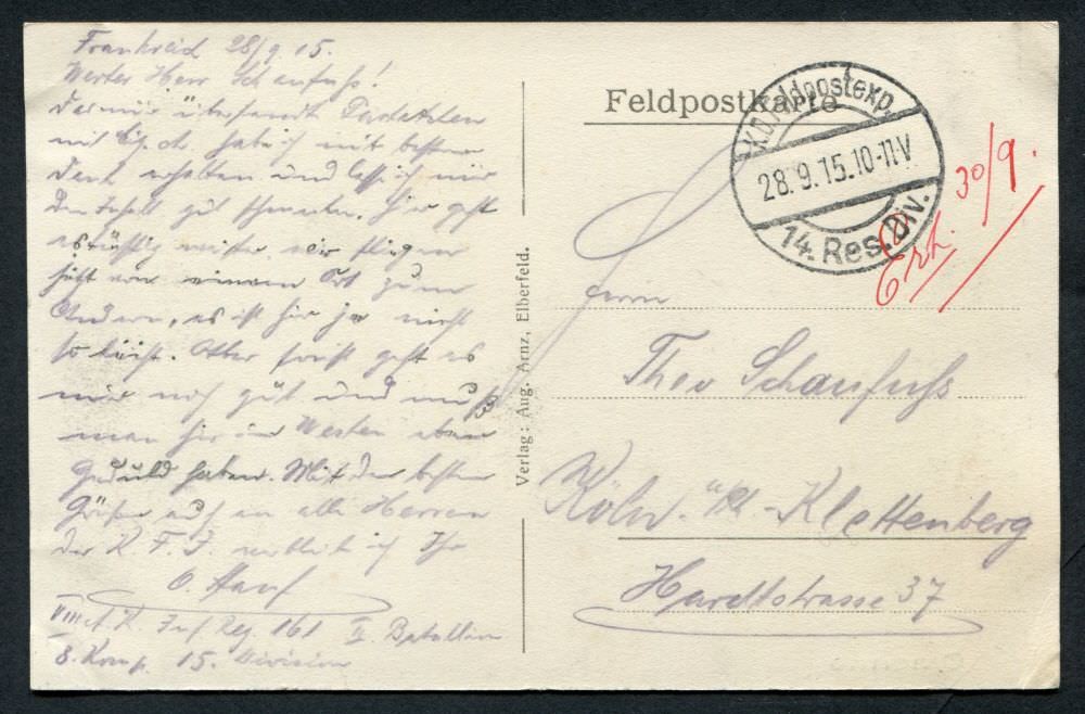 Ein Onlinearchiv mit Feldpostkarten und Liebesgaben aus dem ersten Weltkrieg des 20. Jahrhunderts. Unser Verein „Kölsche Funke rut-wieß vun 1823 e.V.“ oder kurz die „Roten Funken“ gedenken hier Mitgliedern, die den grausamen Krieg erleben mussten.