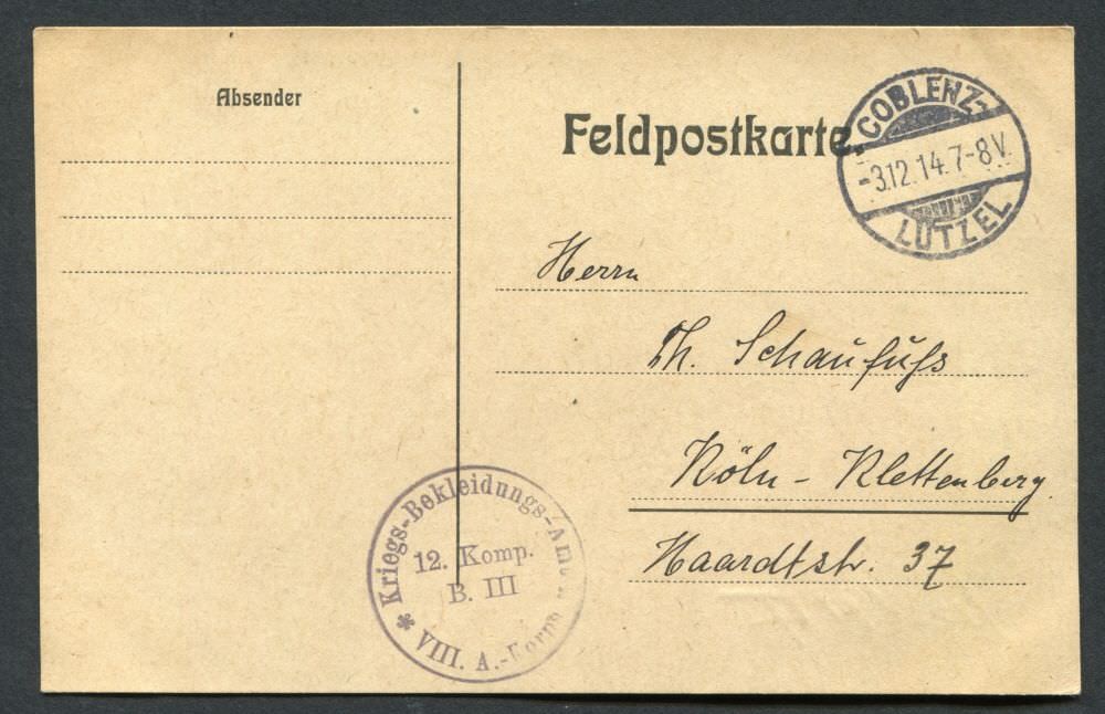 Ein Onlinearchiv mit Feldpostkarten und Liebesgaben aus dem ersten Weltkrieg des 20. Jahrhunderts. Unser Verein „Kölsche Funke rut-wieß vun 1823 e.V.“ oder kurz die „Roten Funken“ gedenken hier Mitgliedern, die den grausamen Krieg erleben mussten.