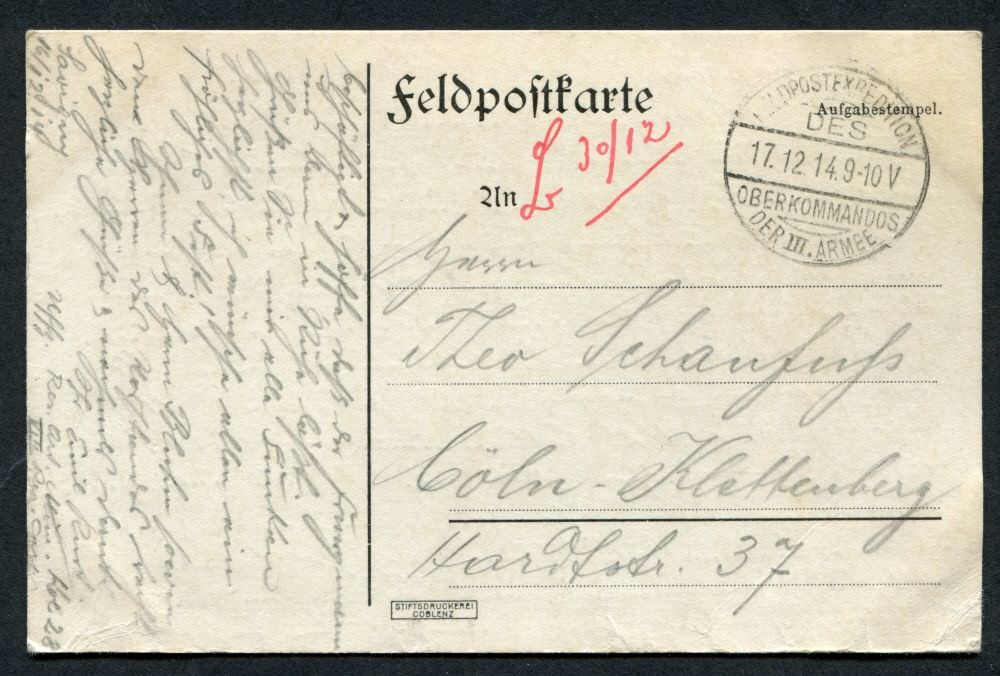 Ein Onlinearchiv mit Feldpostkarten und Liebesgaben aus dem ersten Weltkrieg des 20. Jahrhunderts. Unser Verein „Kölsche Funke rut-wieß vun 1823 e.V.“ oder kurz die „Roten Funken“ gedenken hier Mitgliedern, die den grausamen Krieg erleben mussten.