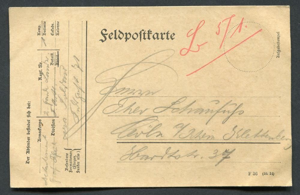 Ein Onlinearchiv mit Feldpostkarten und Liebesgaben aus dem ersten Weltkrieg des 20. Jahrhunderts. Unser Verein „Kölsche Funke rut-wieß vun 1823 e.V.“ oder kurz die „Roten Funken“ gedenken hier Mitgliedern, die den grausamen Krieg erleben mussten.