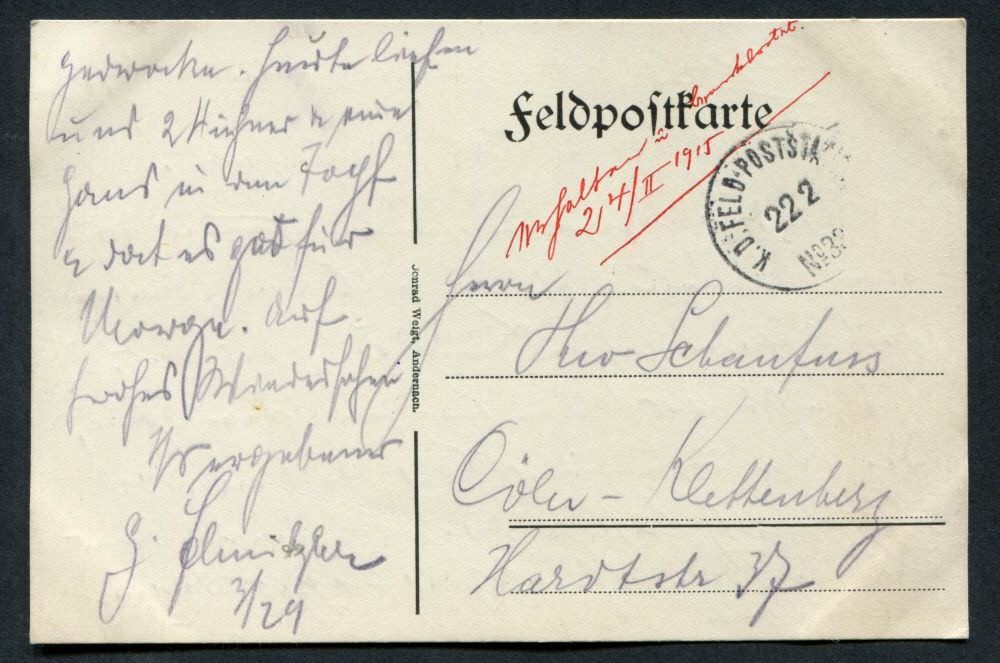 Ein Onlinearchiv mit Feldpostkarten und Liebesgaben aus dem ersten Weltkrieg des 20. Jahrhunderts. Unser Verein „Kölsche Funke rut-wieß vun 1823 e.V.“ oder kurz die „Roten Funken“ gedenken hier Mitgliedern, die den grausamen Krieg erleben mussten.