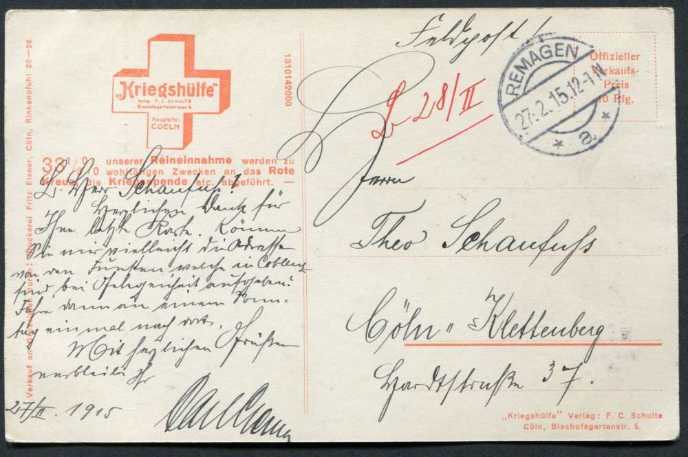 Ein Onlinearchiv mit Feldpostkarten und Liebesgaben aus dem ersten Weltkrieg des 20. Jahrhunderts. Unser Verein „Kölsche Funke rut-wieß vun 1823 e.V.“ oder kurz die „Roten Funken“ gedenken hier Mitgliedern, die den grausamen Krieg erleben mussten.