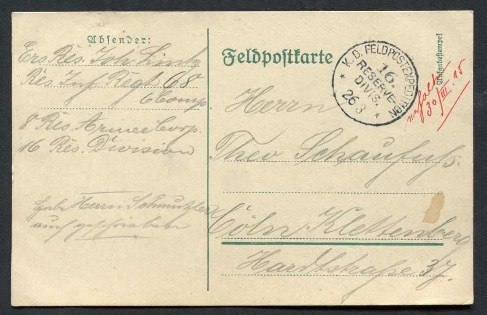 Ein Onlinearchiv mit Feldpostkarten und Liebesgaben aus dem ersten Weltkrieg des 20. Jahrhunderts. Unser Verein „Kölsche Funke rut-wieß vun 1823 e.V.“ oder kurz die „Roten Funken“ gedenken hier Mitgliedern, die den grausamen Krieg erleben mussten.